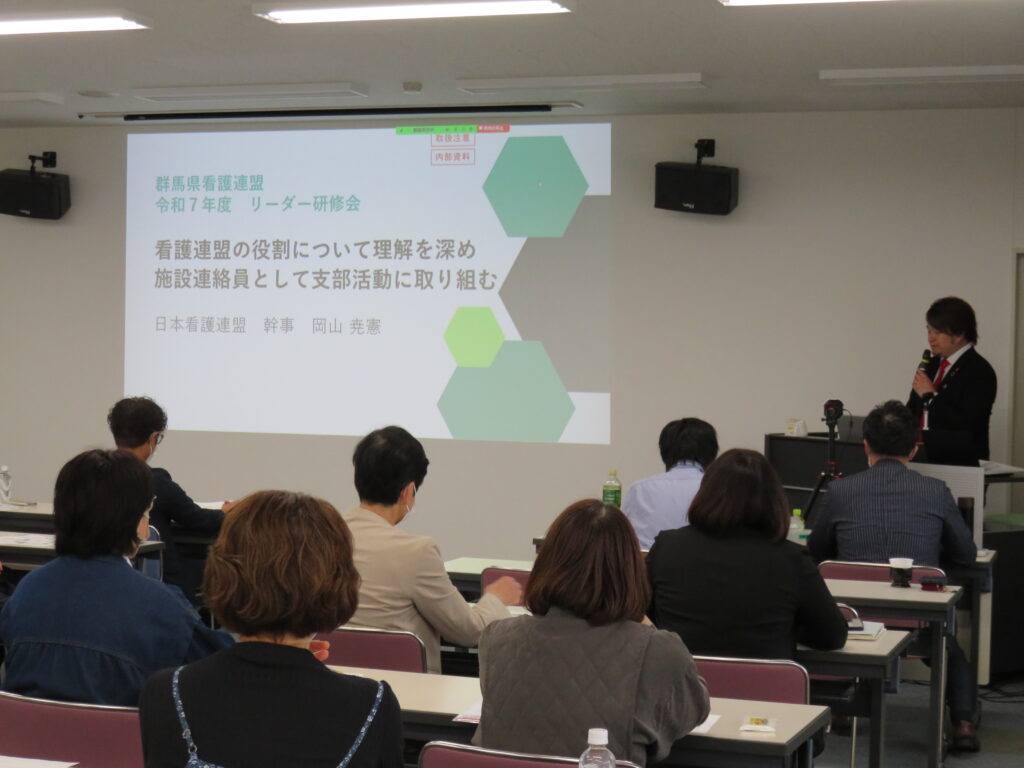 日本看護連盟の岡山尭憲幹事を講師とし、「看護連盟の役割について理解を深め、施設連絡員として支部活動に取り組む」をテーマとした研修会が開催されました。オンラインで28名、会場に37名の参加がありました。講師の熱い思いと分析されたデータのわかりやすい解説に多くの方が頷きながら話を聞いていました。この研修で、看護の未来のため、看護職代表国会議員組織内候補者を応援する役割があると改めて理解していただけたのではないでしょうか。